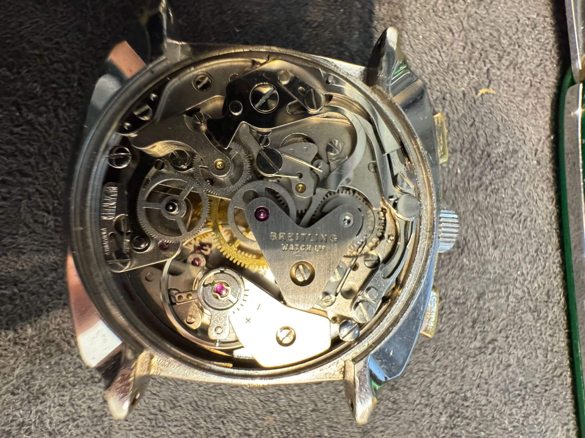 At its heart lies a hand-wound chronograph movement, emblematic of Breitling’s precision craftsmanship before the advent of automatic chronographs.