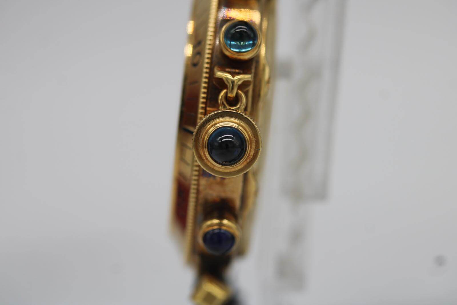 First sold in 1989 in Italy, this example is accompanied by its original box, warranty papers, manuals, wallet and Cartier service documentation. It is fitted with an authentic Cartier leather strap and a matching 18ct gold deployment clasp, and is supplied with insured shipping and a full 12‑month guarantee.