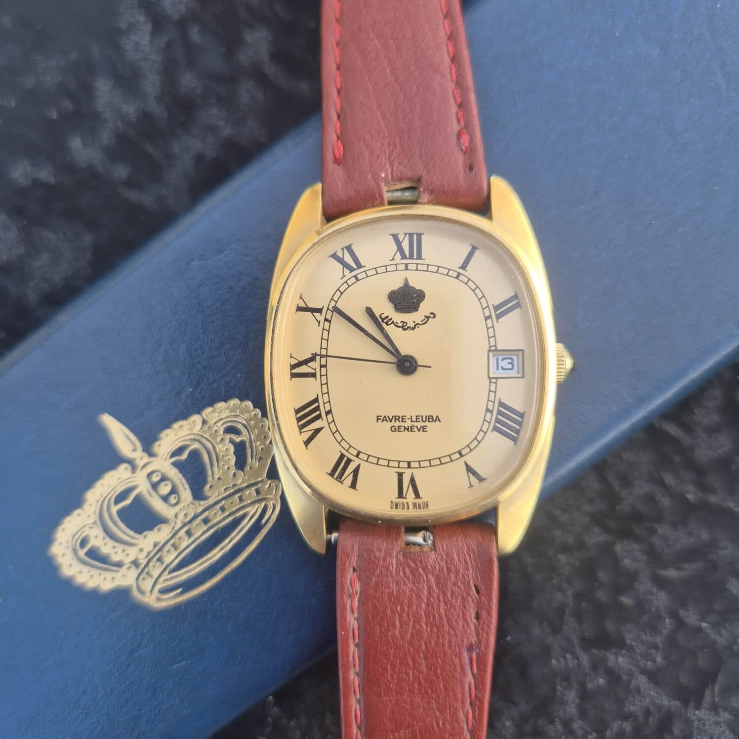 While Jordanian Crown‑stamped dials are not especially rare — many were gifted over the years — they always carry a sense of story, history and cultural charm. This Favre‑Leuba Automatic Gold‑Plated Vintage Watch is a beautifully presented example, complete with its original stamped and signed box.
