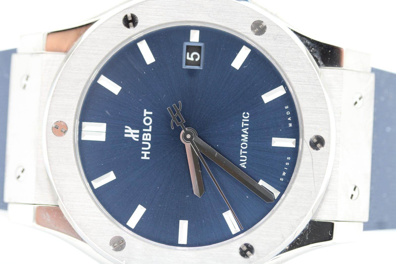 This Hublot Classic Fusion Blue reference 542.NX.7170.LR is presented as a complete full set, including inner and outer box, manuals, virtual warranty card and the original blue rubber strap. A modern, elegant take on Hublot’s signature design language, this Classic Fusion offers understated luxury with strong everyday wearability.