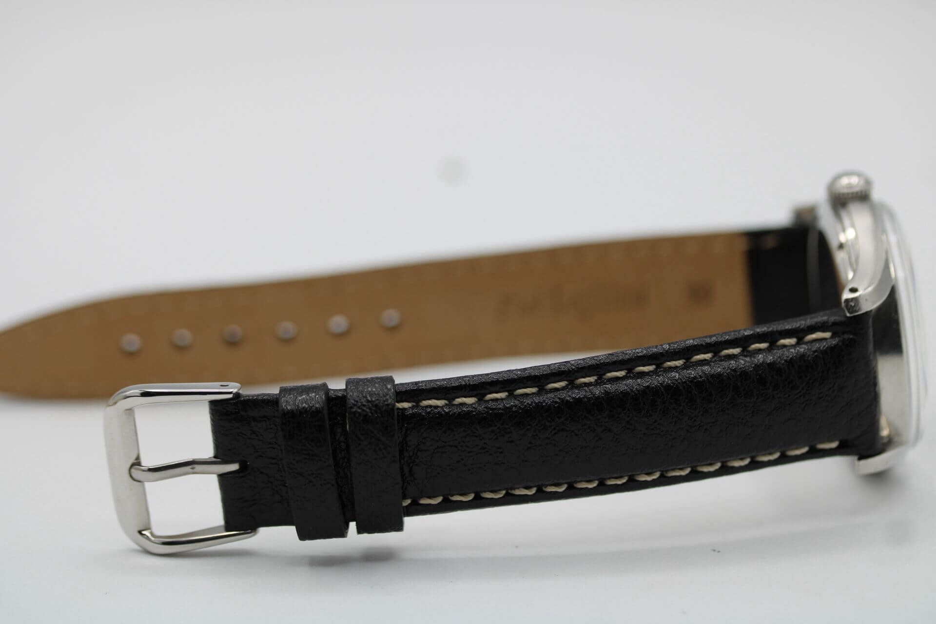 • Suitable options include black leather, grain leather or vintage‑style straps