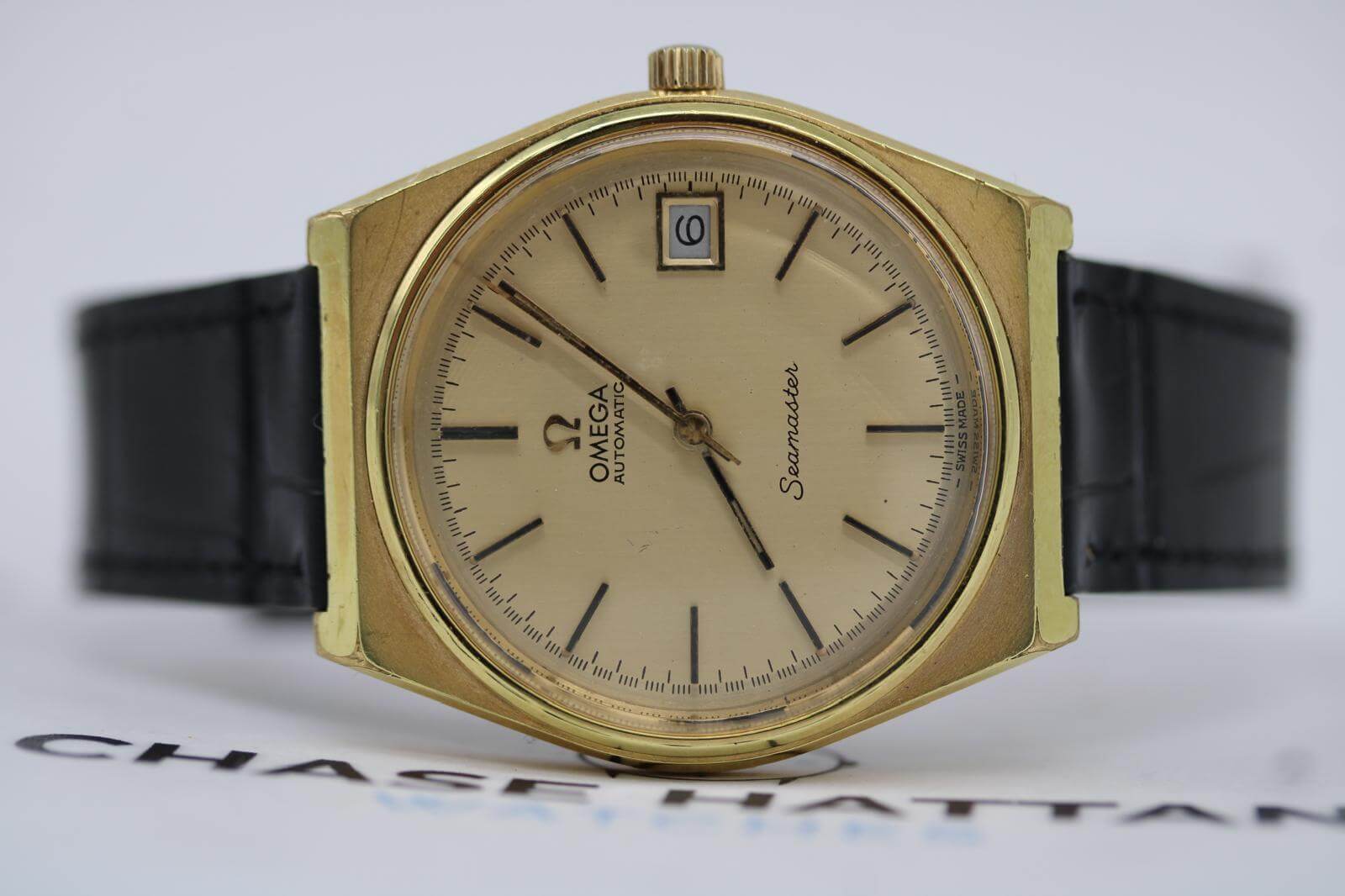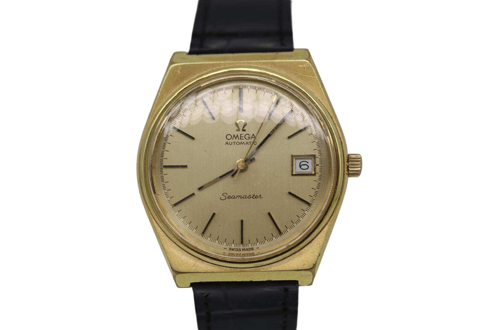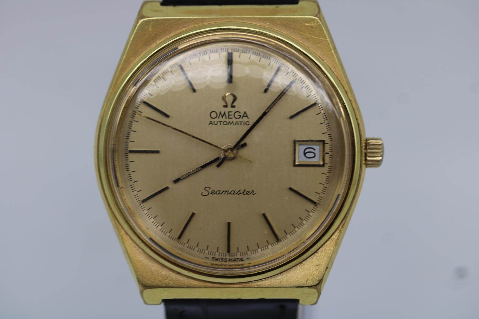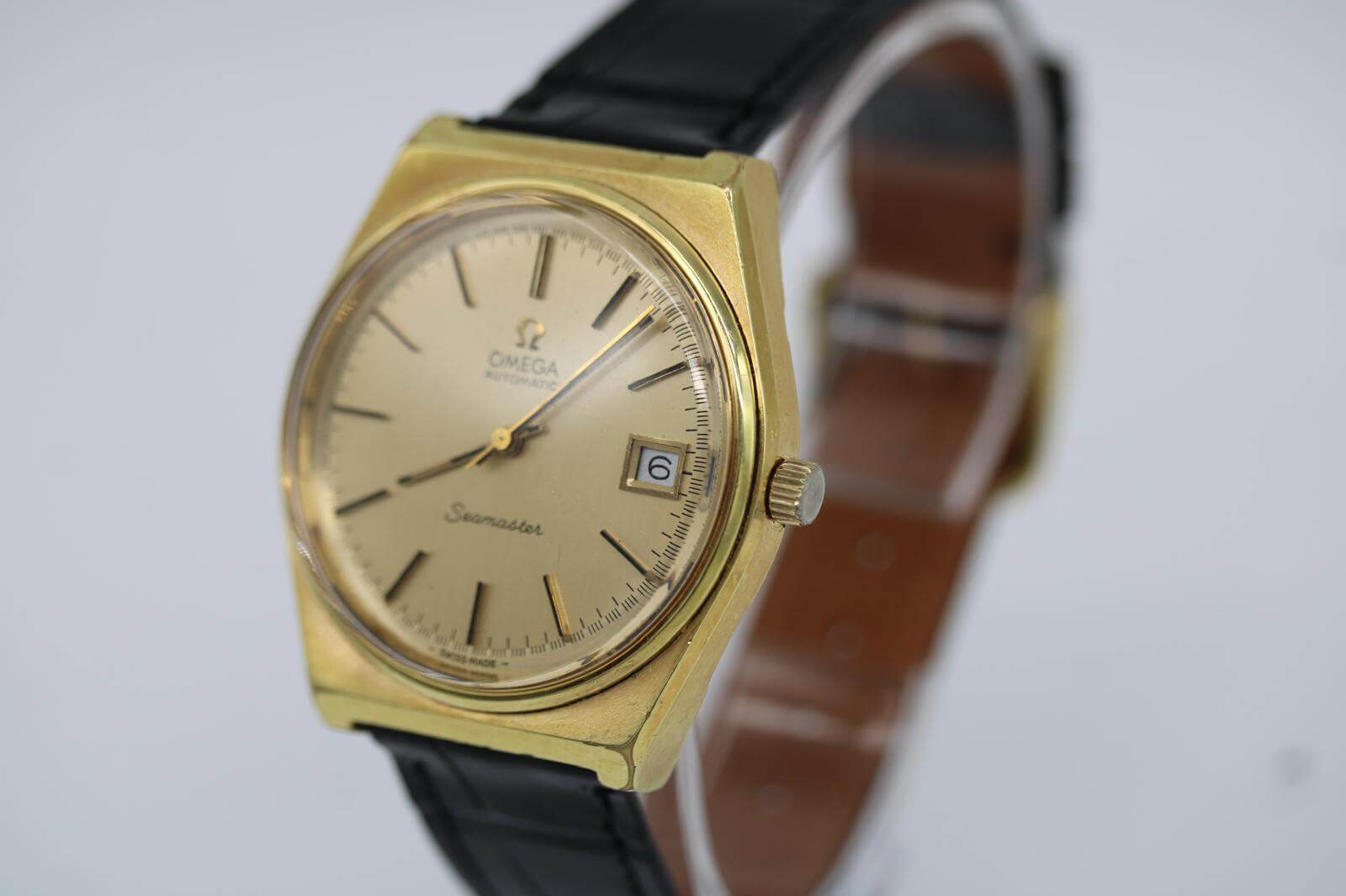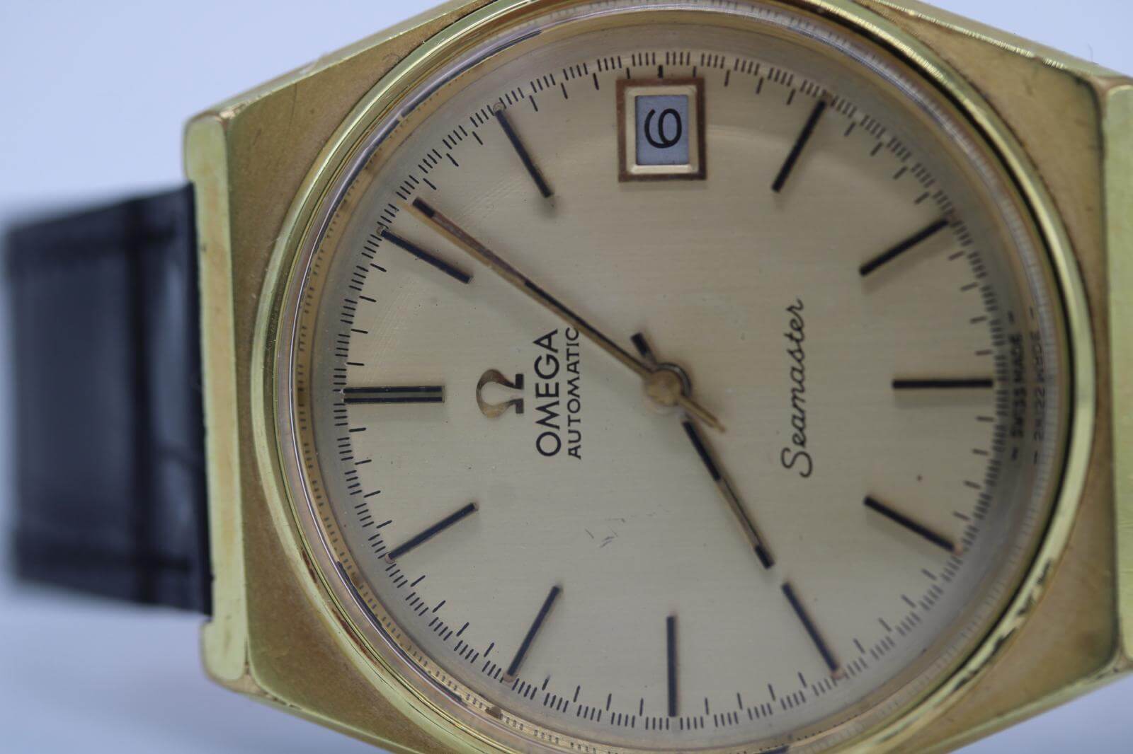 Omega Seamaster 166.0203 – Gold‑Plated – 35mm Cushion Case – Champagne Dial – 1973