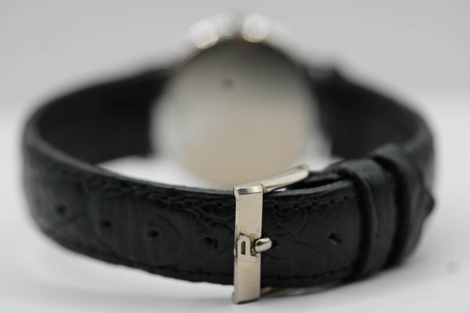 Strap & Buckle: Later leather strap fitted; original white gold buckle present and in excellent condition.