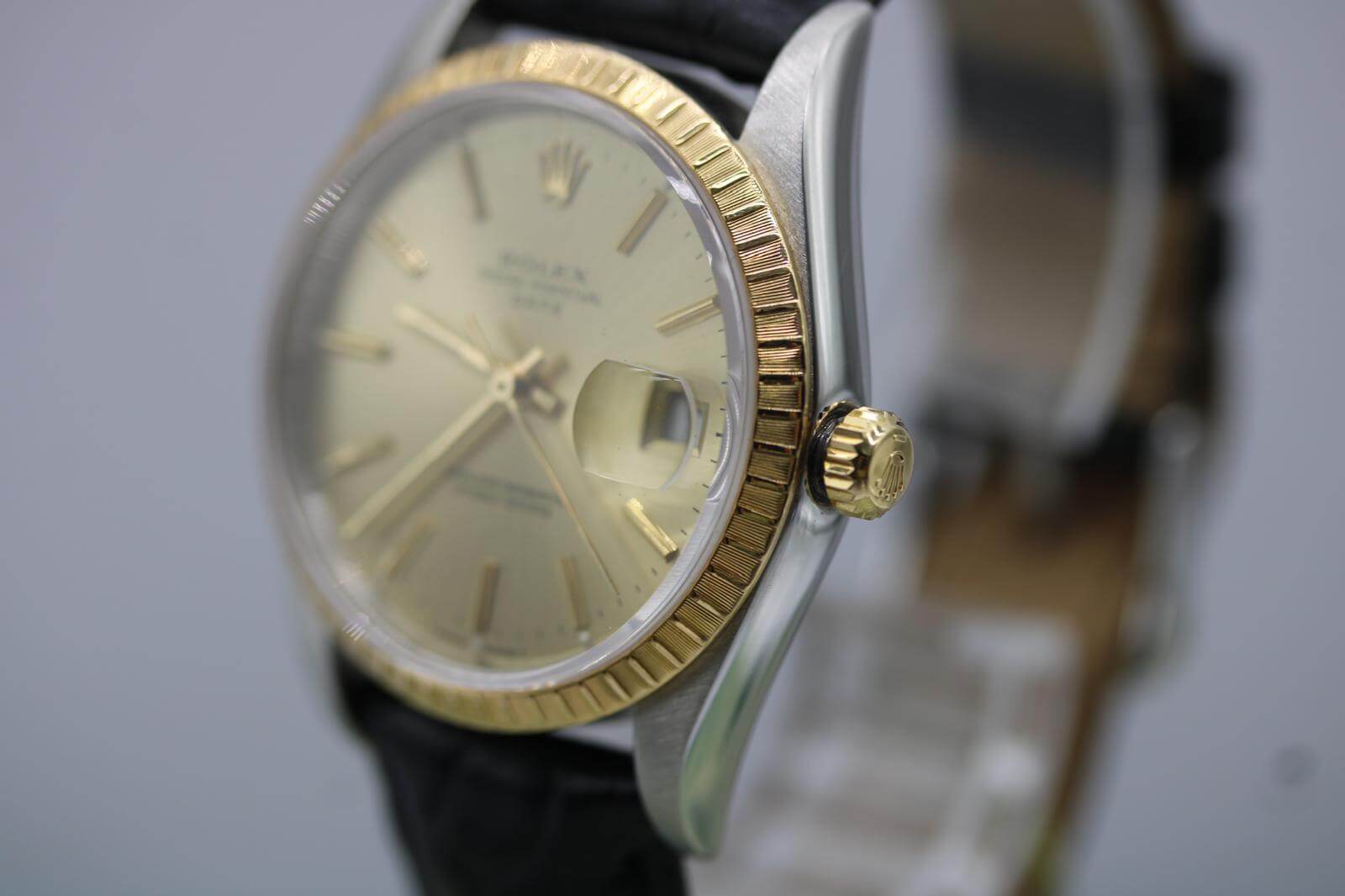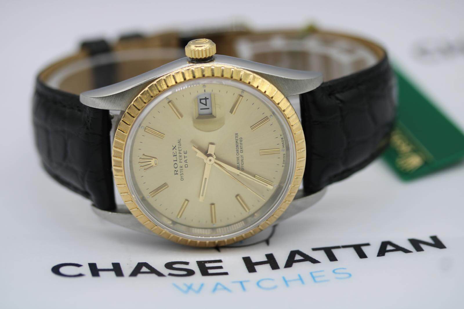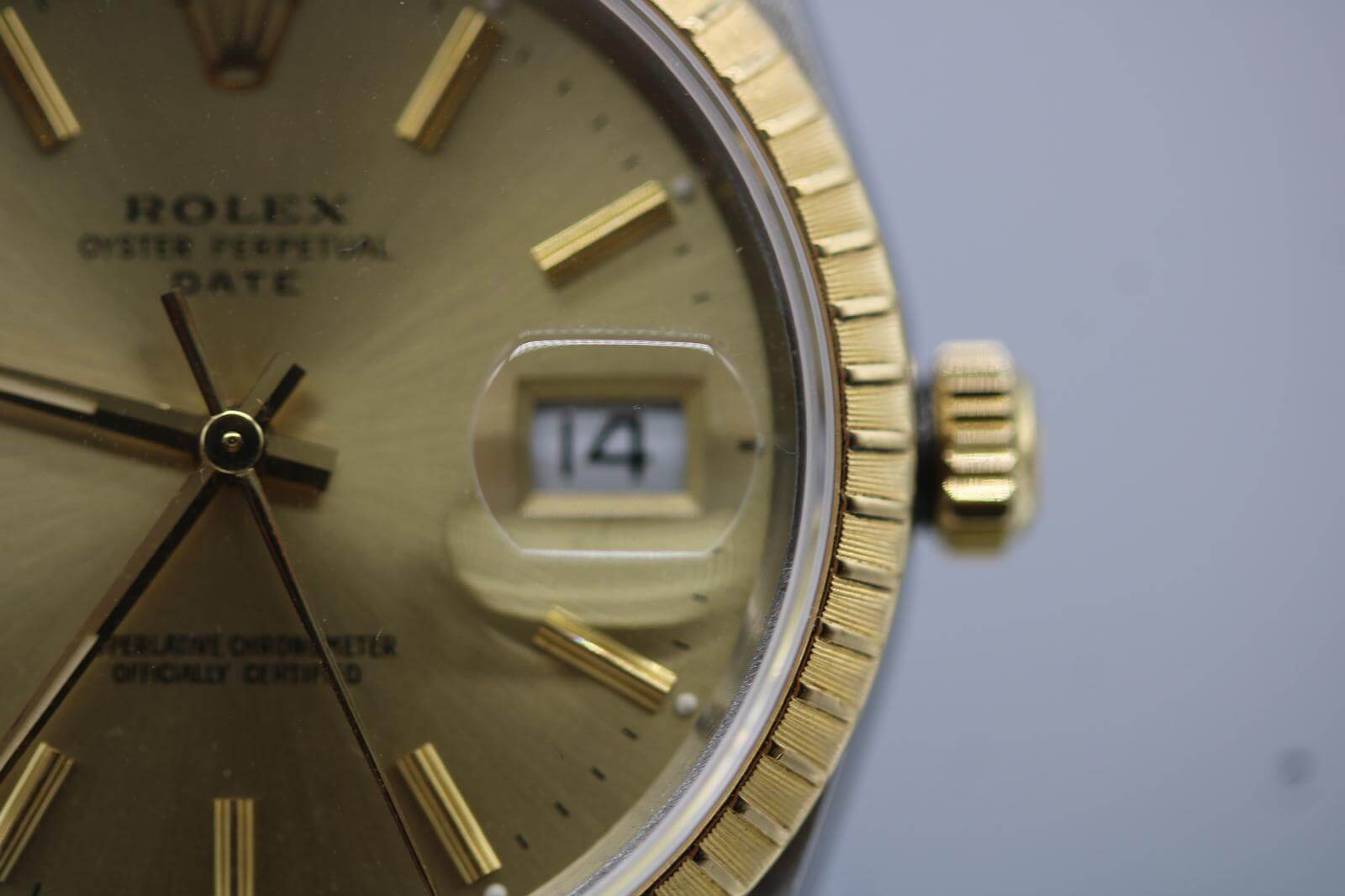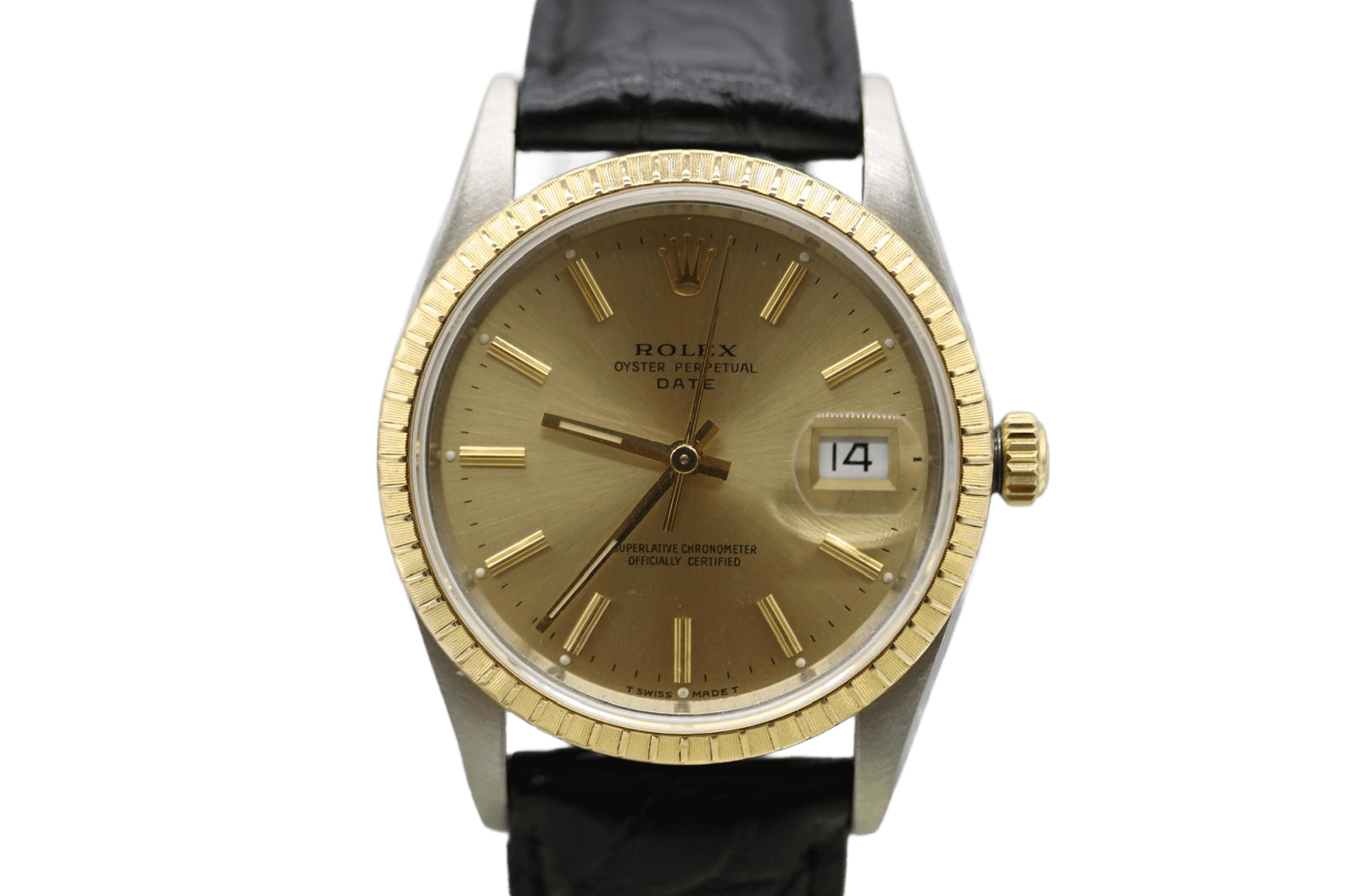 • Dial: Classic Rolex champagne dial with date aperture at 3