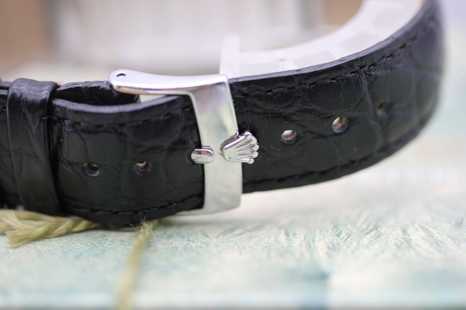 • Strap: Black leather strap in excellent condition, Rolex signed buckle