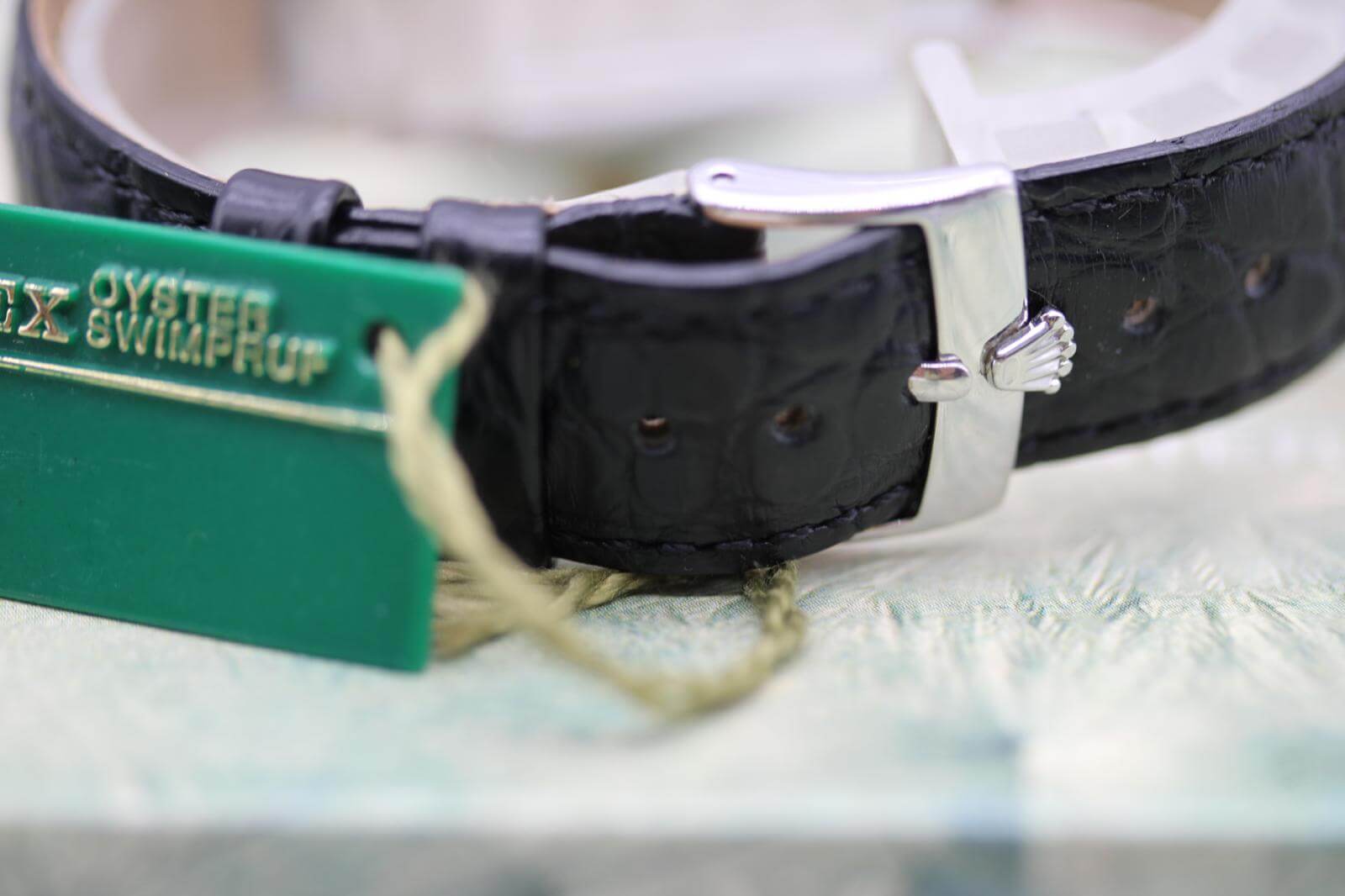 • Bracelet/Strap: Black generic leather strap with Rolex signed buckle